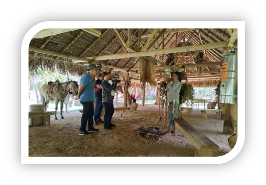 La caballeriza y el arte del trabajo vegueroConocerás una auténtica caballeriza llanera, donde cada rincón guarda el espíritu del trabajo campesino.Aquí podrás observar toda la indumentaria tradicional del llanero: el garabato soguero, los rejos tallados, las sogas de trabajo y los utensilios que hacen parte de su diario vivir.Descubrirás el proceso completo desde curtir un cuero hasta elaborar un rejo, con la destreza y paciencia que caracterizan al artesano del llano.Aprenderás también sobre el hilado y la hechura de un cabresto, ese lazo especial donde se arregla el pelo de la clin y la cola de los caballos y verás cómo se lava, se descarmena y se teje cuidadosamente hasta convertirse en un cabresto digno de los mejores jinetes.Conocerás además qué es una jamuga y una angarilla, así como los diferentes tipos de rejos y sogas que se usan según el trabajo a realizar.El llanero te enseñará cómo se ensilla un caballo, cómo se monta y cuál es el manejo adecuado del animal para lograr una relación de respeto y armonía.También tendrás la oportunidad de aprender cómo se enjamuga un buey, comprendiendo la importancia de este noble animal en los trabajos de finca.Podrás conocer la raza del ganado criollo casanareño, símbolo de la tradición ganadera del llano.Y por si fuera poco, conocerás qué es un pilón y para qué se utiliza, además de recorrer los cultivos de maíz, caña, yuca, plátano, fríjol, naranja y todo el pancoger que el llanero veguero cultiva para su sustento y el de los visitantes que llegan a compartir su mesa.