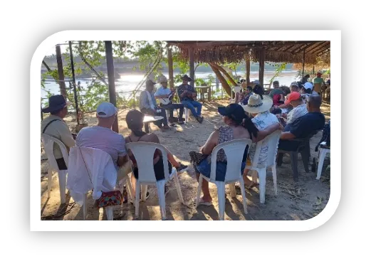 Sabor y descansoTras esta mañana llena de saberes y tradición, disfrutaremos un refrigerio típico, seguido de un delicioso almuerzo campestre: pescado al gusto, arroz cultivado en la región, patacones, ensalada y limonada natural.Después del almuerzo, nada mejor que descansar en una campechana, bajo la sombra de los árboles, dejándose arrullar por el canto de las aves y el susurro del viento.